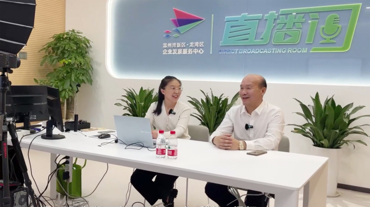 浙江信得達特種管業(yè)有限公司董事長李國斌,在溫州灣新區(qū)(龍灣區(qū))特設的直播間開啟直播帶崗活動。吳昱燊 攝
